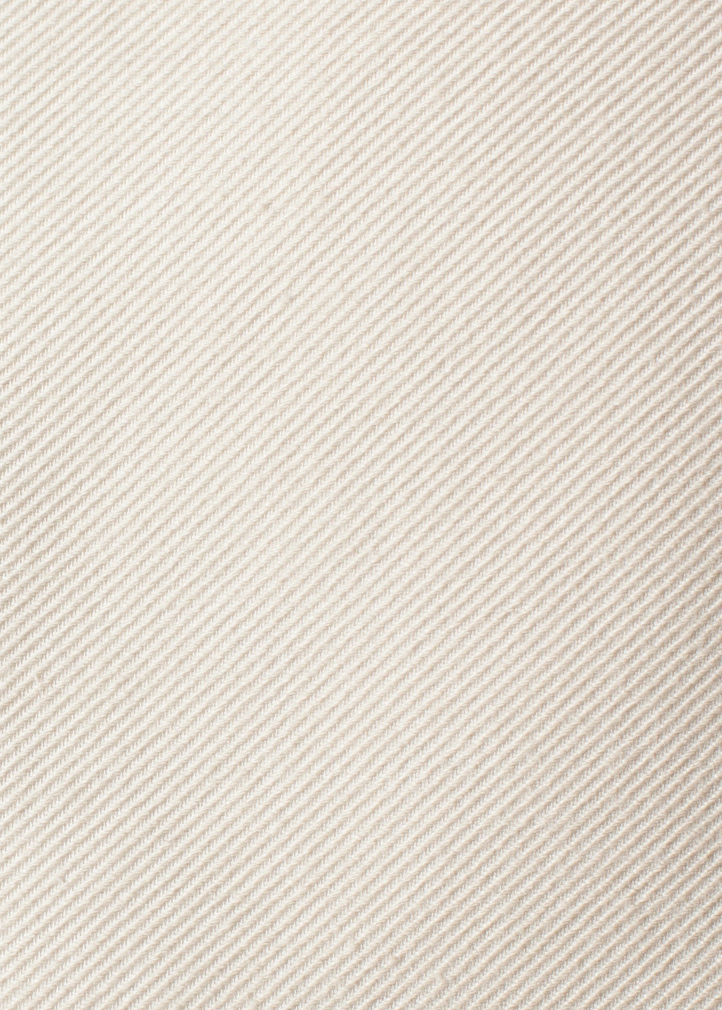 A sleek and sensible collarless coat from Ter et Bantine in a luxurious premium cotton twill that feels more like an easy denim. Raw edges at center front hide hand-sewn snaps. Center back vent and a small vent at each sleeve. Color Cream. 100% Cotton. Lana is wearing the Size 42.